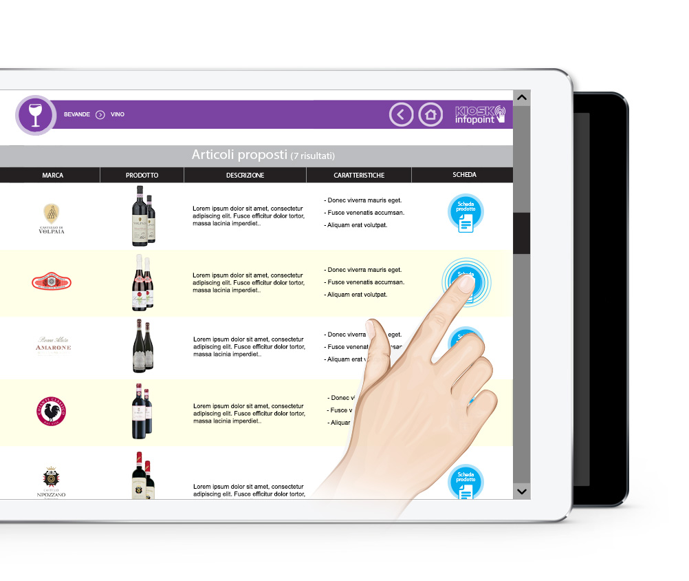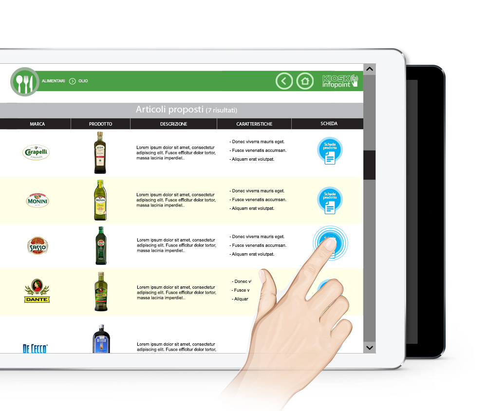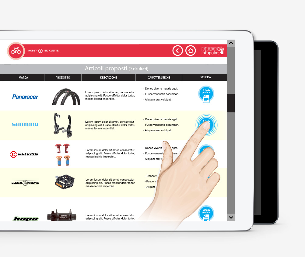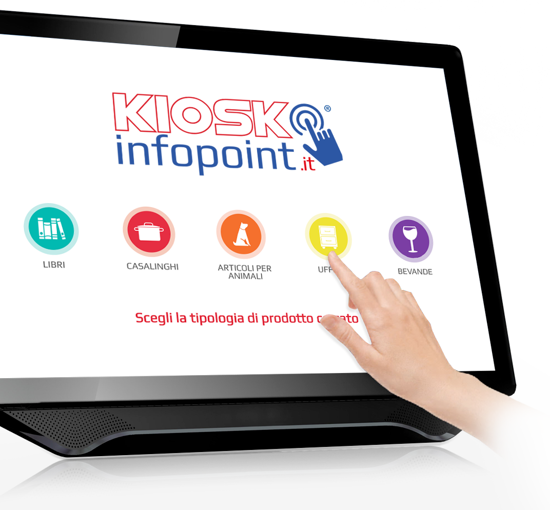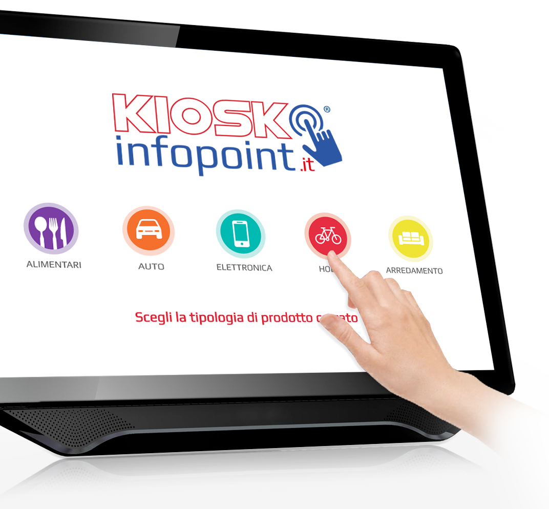 Kiosk Infopoint è un sistema Totem touch che consente agli utenti di ricercare ed utilizzare le informazioni sui prodotti che desiderano con semplici e intuitivi gesti.